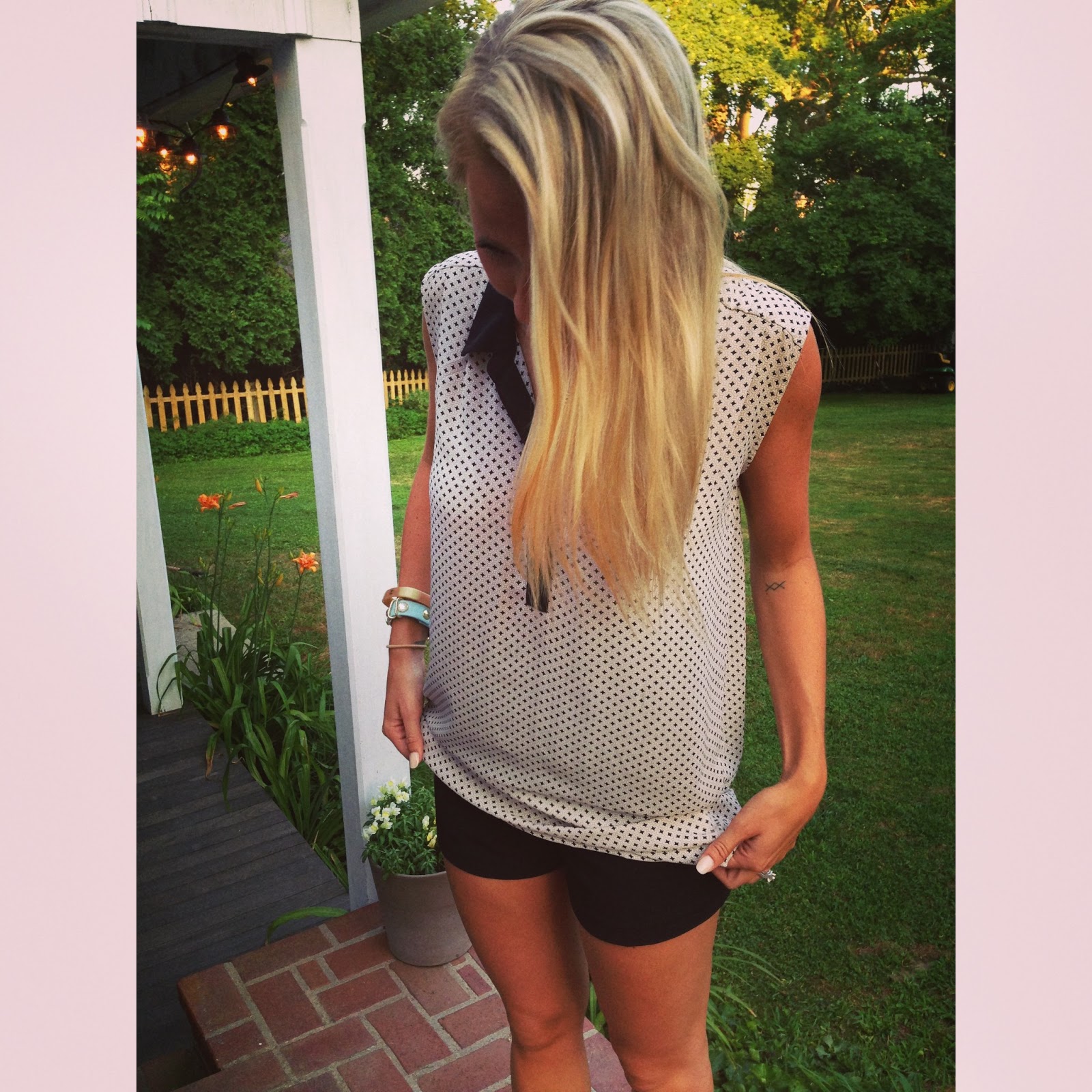 H&M Printed Tunic // F21 High Waisted Shorts // Victorias Secret heels // Vintage Chanel Bangle